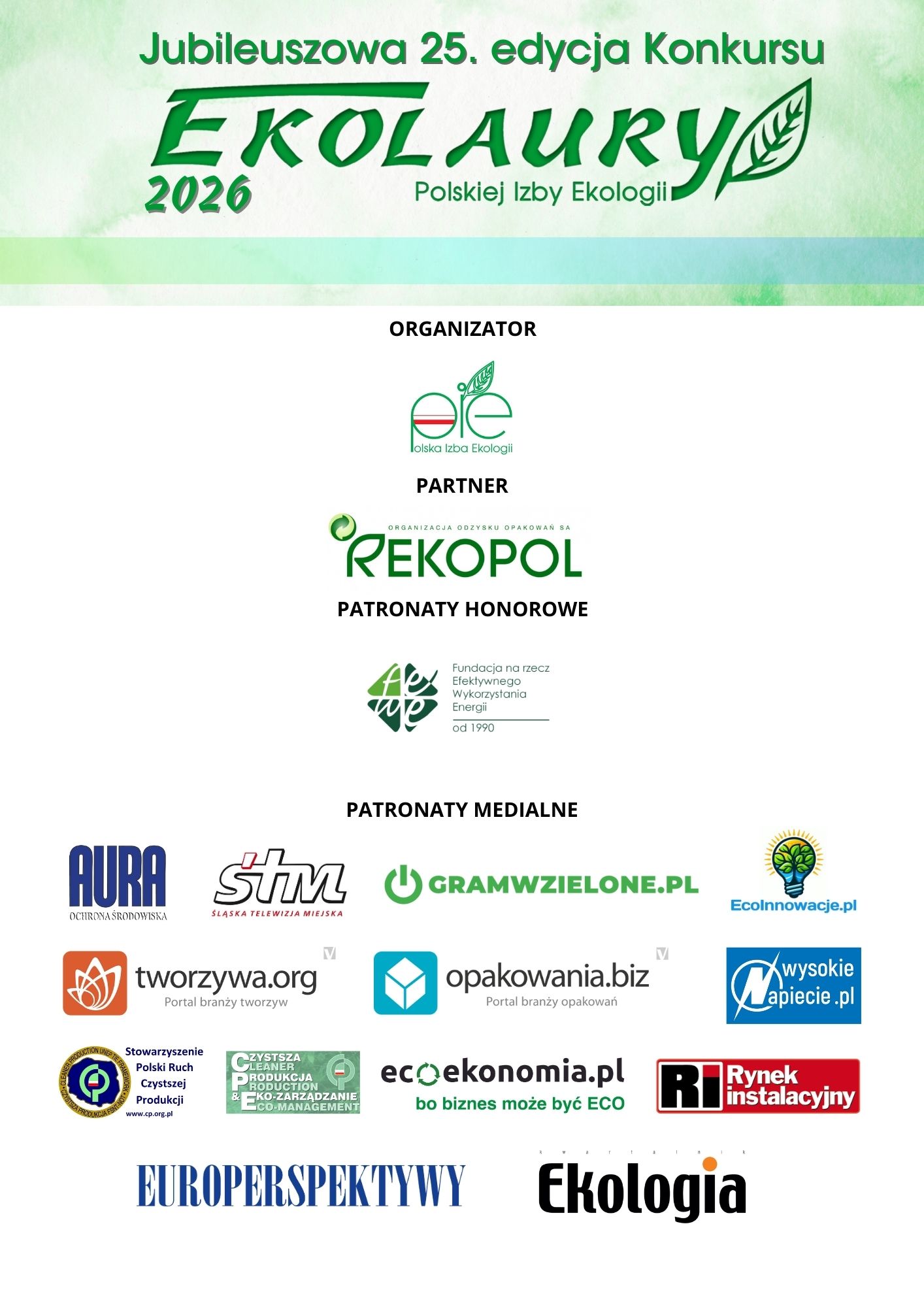 - Ekolaur XXV – lecia, przy czym dla udziału w tej kategorii Uczestnik musi spełnić łącznie następujące warunki: