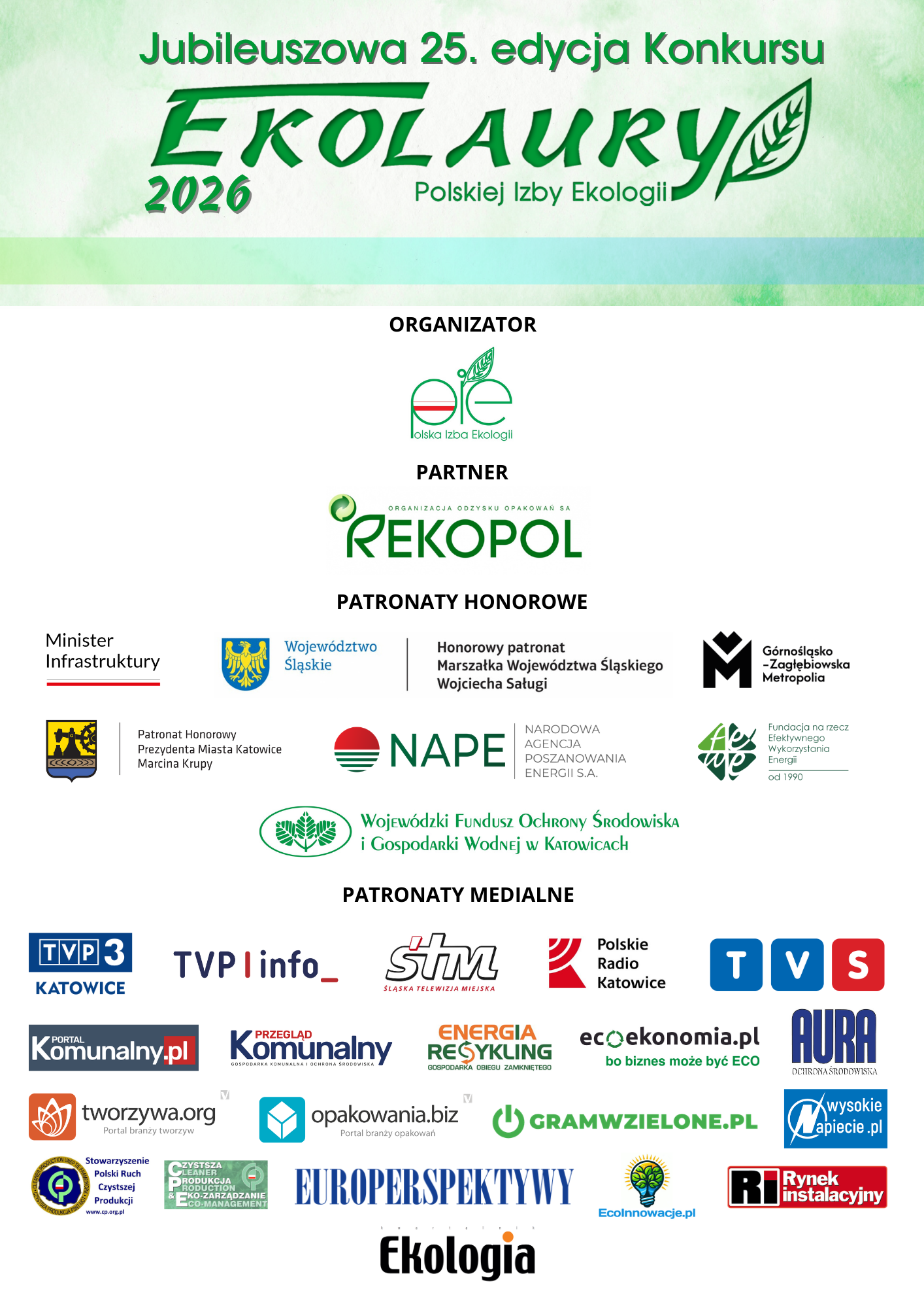 - Ekolaur XXV – lecia, przy czym dla udziału w tej kategorii Uczestnik musi spełnić łącznie następujące warunki: