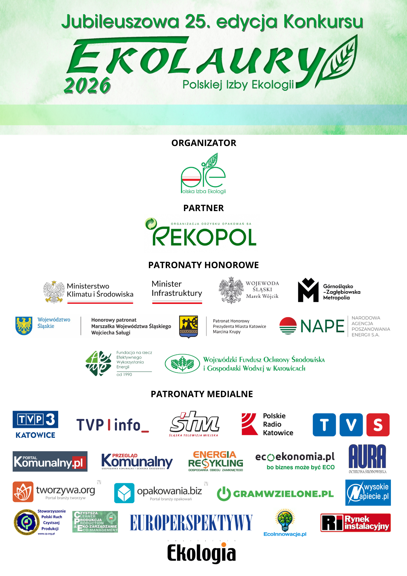 Rada Polskiej Izby Ekologii ogłosiła nabór do jubileuszowej, 25. edycji Konkursu „Ekolaury Polskiej Izby Ekologii 2026”. Konkurs ma zasięg ogólnopolski i skierowany jest do przedsiębiorstw, instytucji, organizacji pozarządowych, jednostek samorządu terytorialnego, uczelni oraz instytutów badawczych, które poprzez swoje działania, inwestycje lub projekty przyczyniają się do poprawy stanu środowiska.